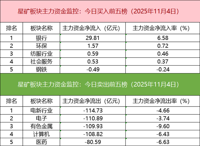 从主力板块资金监控数据来看,银行板块主力资金净流入居首。