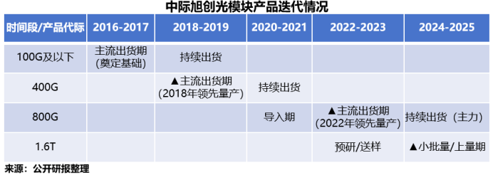 2025年9月,中际旭创称1.6T光模块已通过客户认证,开启量产。此时,新易盛等同行的1.6T产品还处于送样测试阶段。