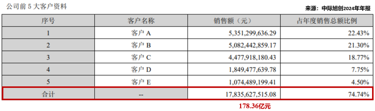 拿2024年举例,中际旭创前五大客户贡献了178.36亿元收入,占总营收的74.74%,其中前三大客户的销售额占比便高达62.5%;且公司海外客户的回款率高达99%,说明客户粘性高、信用好、付款能力极强。
