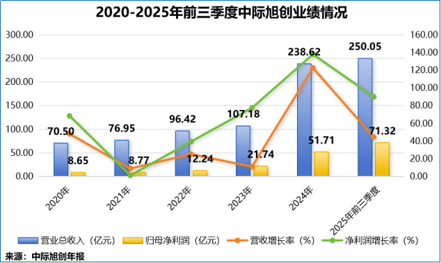 2025年前三季度,公司业绩迎来大爆发:实现营收250.05亿元,同比增长44.43%;净利润71.32亿元,同比增长90.05%,仅前三季度的业绩就已超过2024年全年水平。