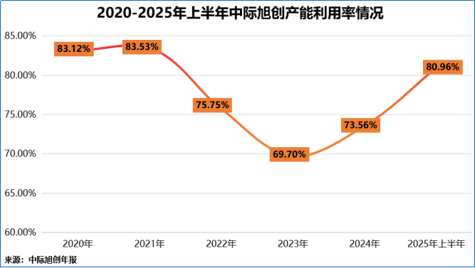 2020-2025年上半年,中际旭创的产能利用率相对比较稳定,基本维持在70%-85%的较高水平,这从侧面也说明了其与大客户的合作模式较为稳定且长久。
