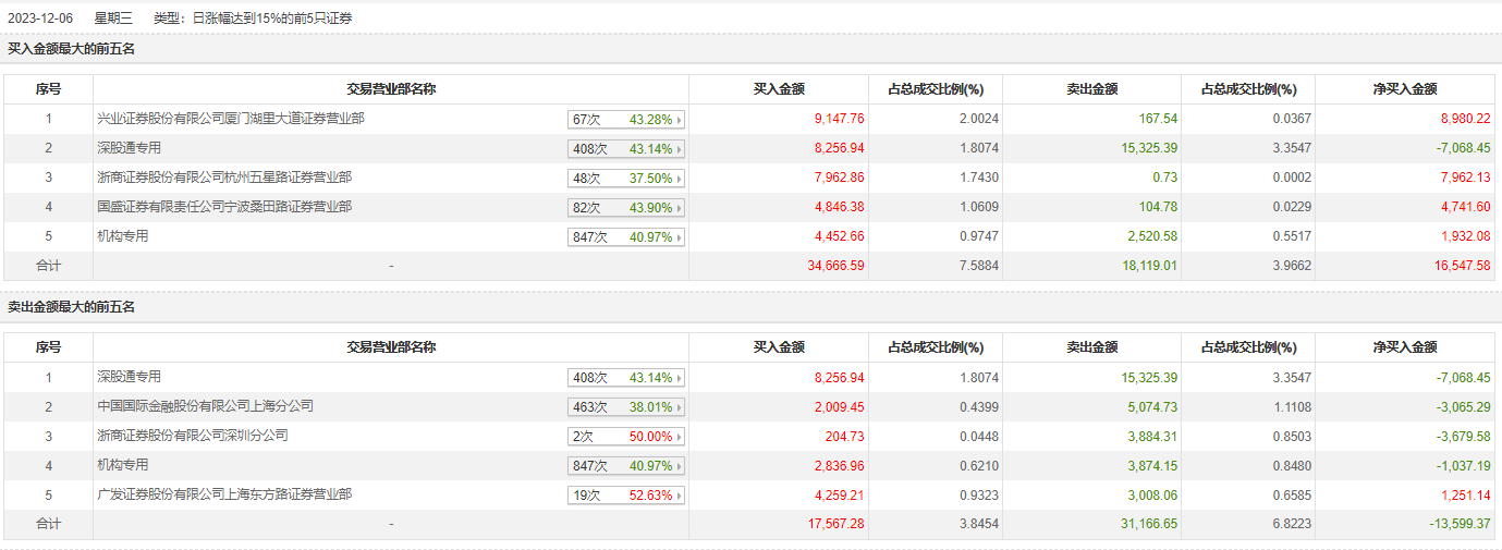 具体来看,机构买入7289.62万元,卖出6394.73万元,合计净买入894.89万元。此外,知名游资现身龙虎榜,宁波桑田路(国盛证券有限责任公司宁波桑田路证券营业部)净买入4741.60万元。此外,兴业证券厦门湖里大道证券营业部、深股通专用分别买入9147.76万元、8256.94万元;深股通专用、中国国际金融上海分公司分别卖出1.53亿元、5074.73万元。