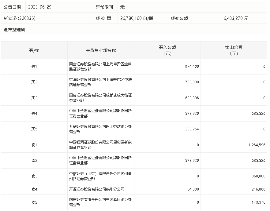 6月29日,新文退今日跌4%,龙虎榜数据显示,上榜营业部席位全天成交586.58万元,占当日总成交金额比例为91.23%。其中,买入金额为324.63万元,卖出金额为261.95万元,合计净买入62.68万元。