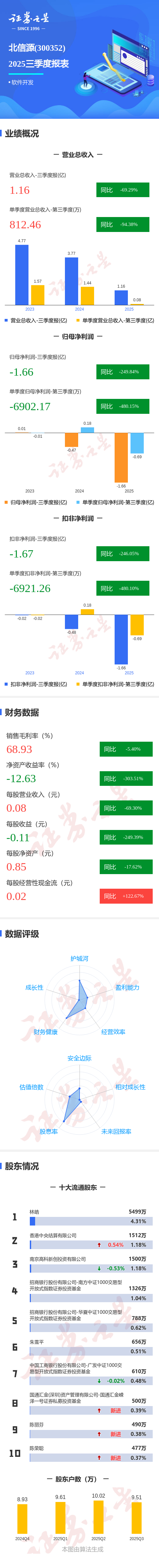 图解北信源三季报:第三季度单季净利润同比下降480.15%