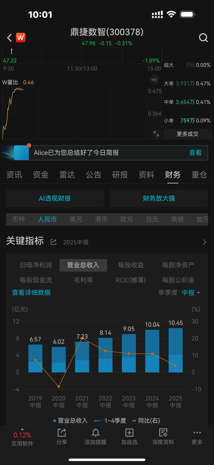 鼎捷数智最新财报数据显示,2025年上半年公司实现营业收入10.45亿元,同比增长4.08%;归属于上市公司股东的净利润达4502.67万元,同比增长6.09%。