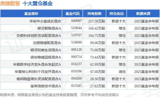 重仓鼎捷数智的前十大公募基金请见下表: