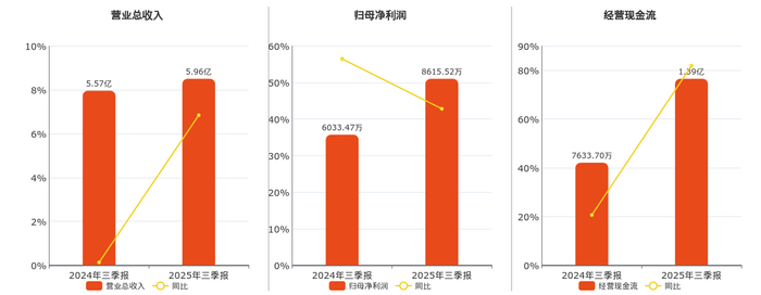 公司营业总收入为5.96亿元,在已披露的同业公司中排名第26。归母净利润为8615.52万元。经营活动现金净流入为1.39亿元。