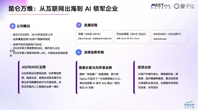自成立以来,昆仑万维深耕全球市场,拥有全球化运营能力,我们收入92%来自于海外,这种深厚的国际化基因使得我们在AI时代可以理解不同市场的需求,并且把AI的产品和服务更高效地推广到全球。