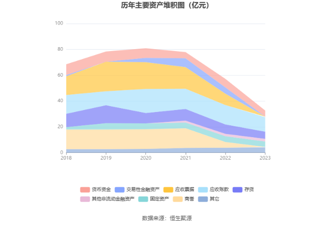 资产重大变化方面,截至2023年年末,公司应收票据较上年末减少95.05%,占公司总资产比重下降13.99个百分点;交易性金融资产较上年末减少99.88%,占公司总资产比重下降8.54个百分点;应收账款较上年末减少25.53%,占公司总资产比重上升8.00个百分点;商誉较上年末减少94.43%,占公司总资产比重下降6.94个百分点。
