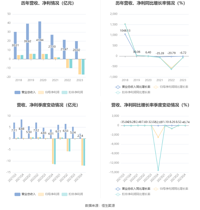 数据显示,2023年公司加权平均净资产收益率为-73.01%,较上年同期下降46.36个百分点;公司2023年投入资本回报率为-59.01%,较上年同期下降37.33个百分点。