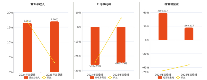 公司营业总收入为7.20亿元,在已披露的同业公司中排名第22。归母净利润为-2403.29万元,在已披露的同业公司中排名第27。经营活动现金净流入为1663.23万元,在已披露的同业公司中排名第25,较去年同报告期经营活动现金净流入减少1993.68万元,同比较去年同期下降54.52%。