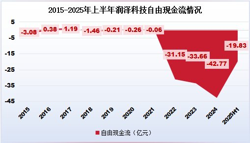 更大的挑战在于资金链。持续的天量资本开支,使得公司的自由现金流长期为负。仅2022年借壳上市至2025年上半年这三年半时间,润泽科技自由现金流的累计亏损额就达到127.41亿元,相当于其2024年全年营收的3倍。资产负债率一度超过80%的警戒线。