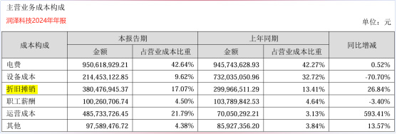 2024年,润泽科技的折旧摊销成本为3.80亿元,同比增长近30%,占全部成本的17.07%,成为吞噬利润的主要因素之一。