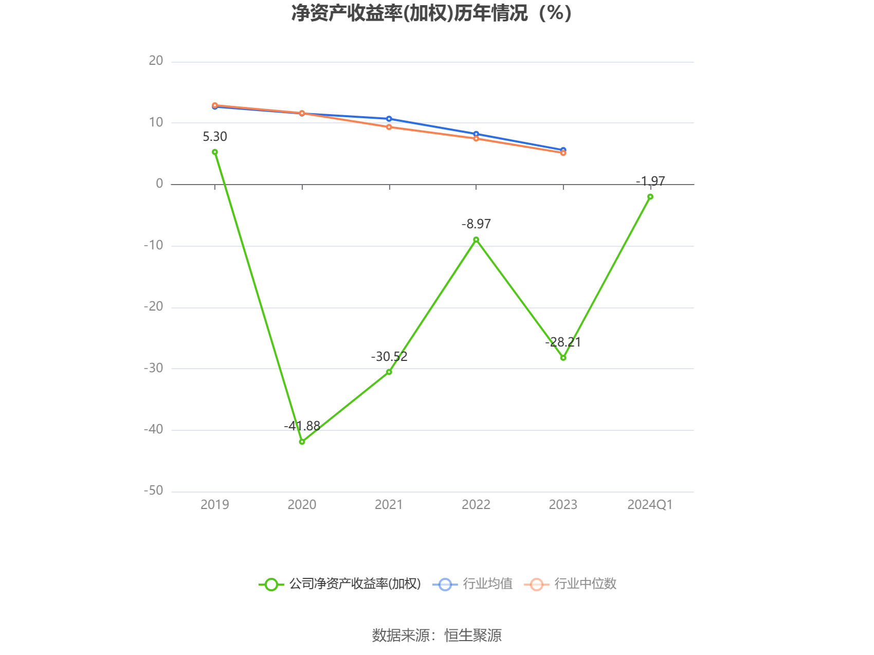数据显示,2024年第一季度公司加权平均净资产收益率为-1.97%,较上年同期下降0.37个百分点;公司2024年第一季度投入资本回报率为-1.53%,较上年同期下降0.33个百分点。