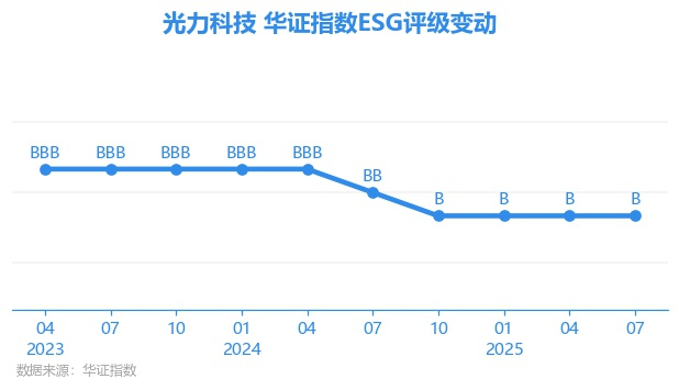 日前,华证指数公布了新一期(2025年7月31日)的ESG评级结果,光力科技(300480.SZ)获得B评级(华证指数评级为C起至AAA九档,C为最低档,AAA为其最高一级评级/AA为其第二档),上一期(2025年4月30日)ESG评级为B。本期ESG评级在529家电子设备、仪器和元件行业A股上市公司中排名第400(上一期排名第381)。