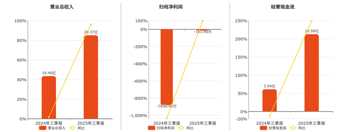公司营业总收入为20.37亿元。归母净利润为-161.90万元。经营活动现金净流入为10.59亿元。