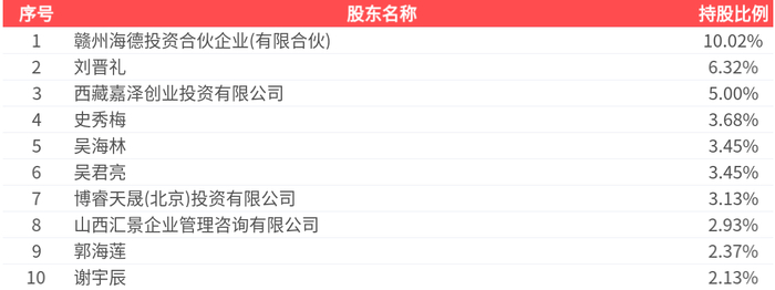 公司股东户数为2.10万户,前十大股东持股数量为1.15亿股,占总股本比例为42.48%,前十大股东持股情况如下:
