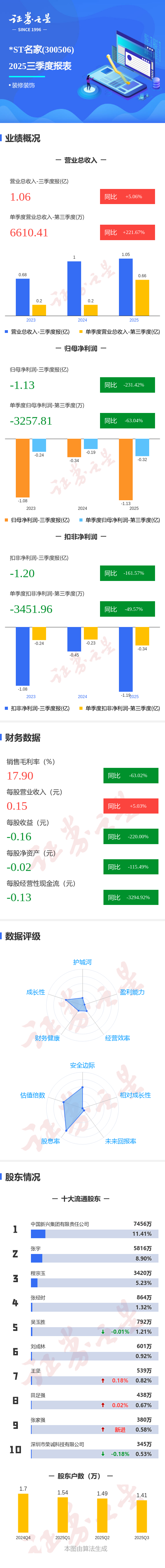 图解*ST名家三季报:第三季度单季净利润同比下降63.05%