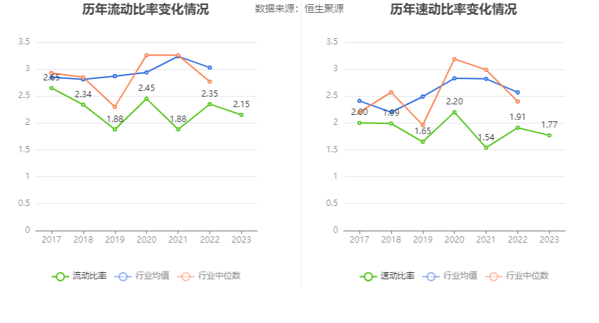2023年,公司流动比率为2.15,速动比率为1.77。
