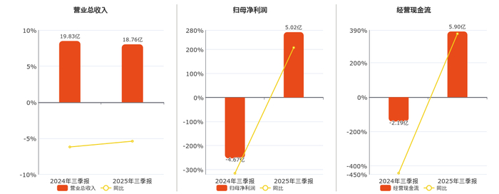 公司营业总收入为18.76亿元,较去年同报告期营业总收入减少1.07亿元,同比较去年同期下降5.39%。归母净利润为5.02亿元。经营活动现金净流入为5.90亿元。