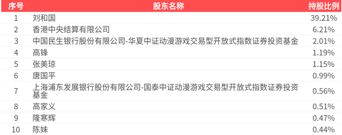 公司股东户数为3.62万户,前十大股东持股数量为1.24亿股,占总股本比例为52.75%,前十大股东持股情况如下: