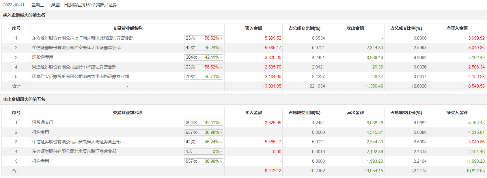 10月11日,佳发教育今日涨16.62%,全天换手率达15.21%,振幅达21.69%。龙虎榜数据显示,营业部席位合计净卖出159.89万元。其中,机构合计净卖出6509.01万元。此外,东方证券上海浦东新区源深路证券营业部、方新侠(中信证券西安朱雀大街证券营业部)分别买入5999.52万元、5385.17万元;深股通专用、方新侠(中信证券西安朱雀大街证券营业部)分别卖出8988.48万元、2344.30万元。