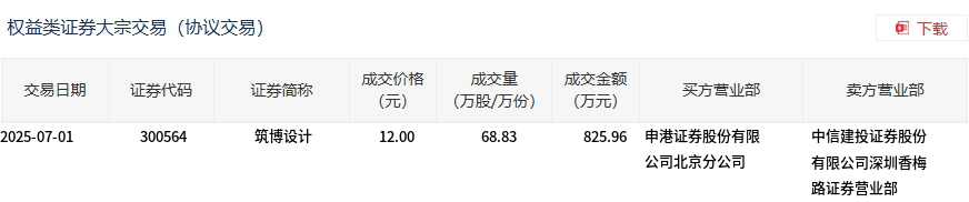 筑博设计今日大宗交易折价成交68.83万股,成交额825.96万元