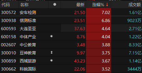 社会服务板块异动拉升 安车检测涨超7%