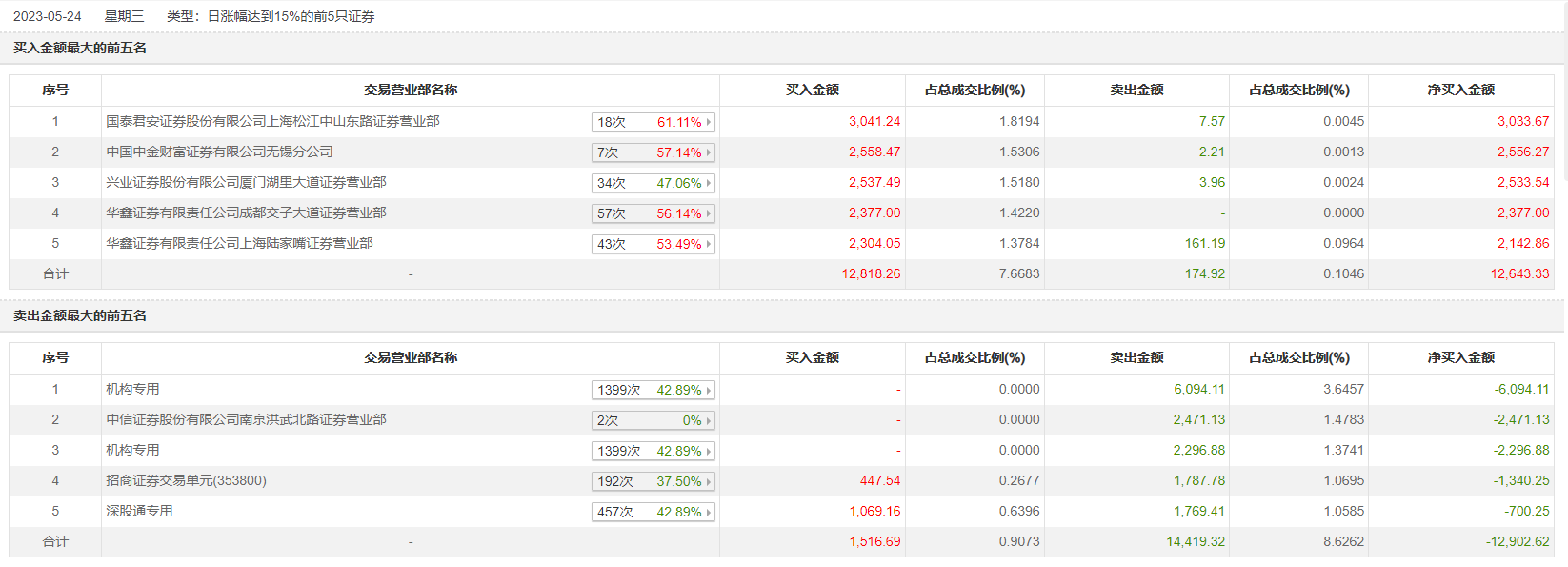 5月24日,光库科技今日涨停,龙虎榜数据显示,上榜营业部席位全天成交2.89亿元,占当日总成交金额比例为17.31%。其中,买入金额为1.43亿元,卖出金额为1.46亿元,合计净卖出259.29万元。