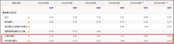 当然以上两个业务板块并不是资本市场预期的重点。核心在于光通讯器件业务预期上。该业务板块在今年也是首次超过光纤激光器件成为公司新的增长驱动。上半年,光通讯器件收入达到2.80亿元,同比增长73.89%,销量同比激增99.41%,收入占比光纤激光器件的42.47%,成为最核心业务,而业务的驱动逻辑就是AI算力建设带动400G和800G光模块的需求放量,而资本市场对于公司光通讯器件业务预期有两个重点: