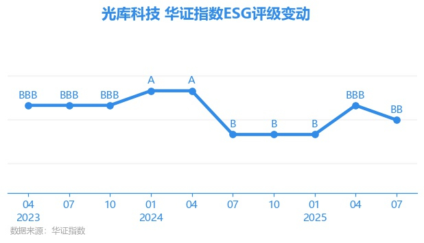 日前,华证指数公布了新一期(2025年7月31日)的ESG评级结果,光库科技(300620.SZ)获得BB评级(华证指数评级为C起至AAA九档,C为最低档,AAA为其最高一级评级/AA为其第二档),上一期(2025年4月30日)ESG评级为BBB。本期ESG评级在529家电子设备、仪器和元件行业A股上市公司中排名第155(上一期排名第143)。