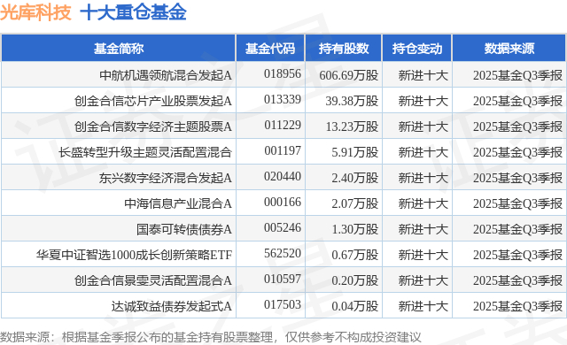 重仓光库科技的前十大公募基金请见下表: