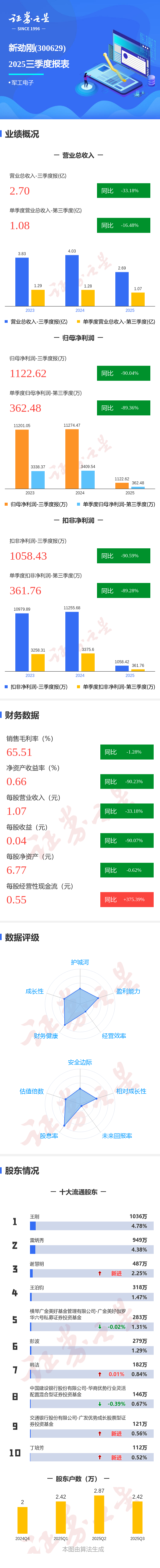 图解新劲刚三季报:第三季度单季净利润同比下降89.37%