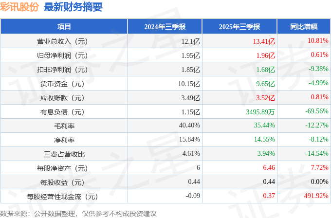 彩讯股份(300634)2025年三季报简析:营收净利润同比双双增长,公司应收账款体量较大