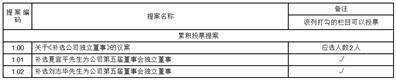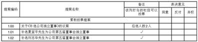 说明:提案 1.00 采用累积投票表决,即股东每持有一股即拥有与每个提案组下应选独立董事人数相同的选举票数。股东对每位独立董事候选人进行投票时应在累积表决票总额下自主分配。