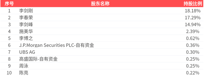公司股东户数为2.25万户,前十大股东持股数量为7736.73万股,占总股本比例为54.79%,前十大股东持股情况如下:
