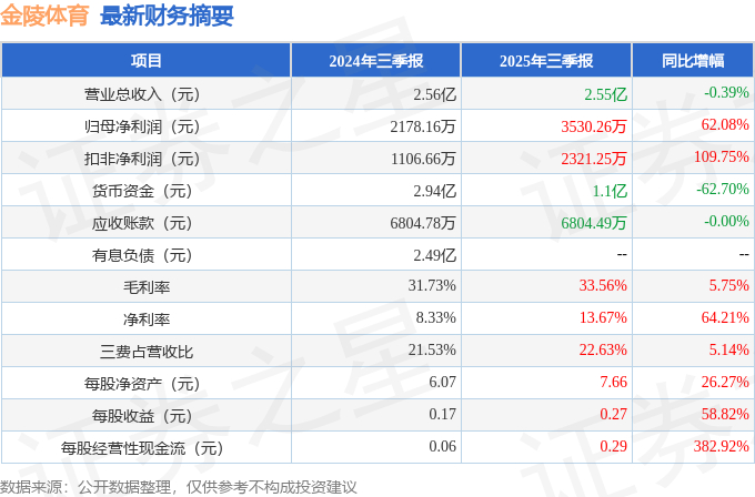 金陵体育(300651)2025年三季报简析:净利润同比增长62.08%,盈利能力上升