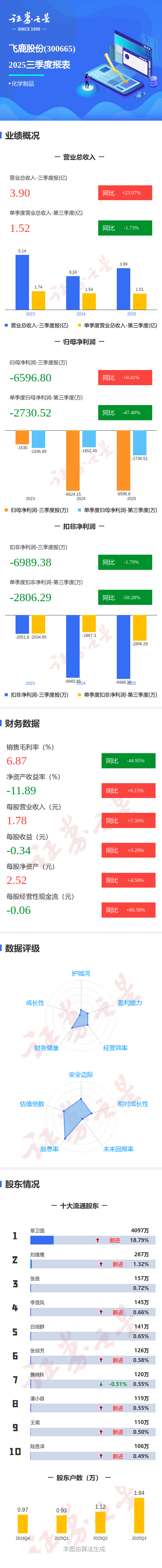 图解飞鹿股份三季报:第三季度单季净利润同比下降47.40%