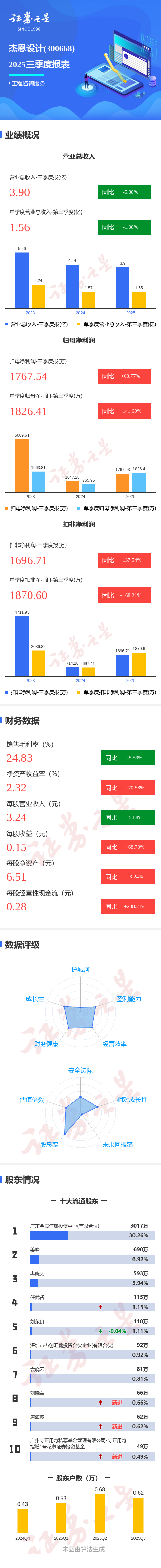图解杰恩设计三季报:第三季度单季净利润同比增长141.60%