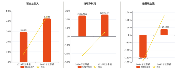 公司营业总收入为5.57亿元。归母净利润为3268.32万元。经营活动现金净流入为2235.17万元。