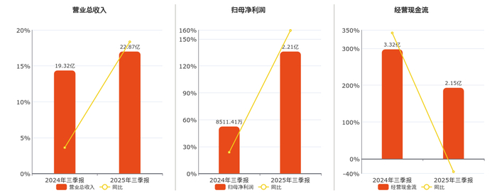 公司营业总收入为22.87亿元。归母净利润为2.21亿元。经营活动现金净流入为2.15亿元,较去年同报告期经营活动现金净流入减少1.17亿元,同比较去年同期下降35.13%。