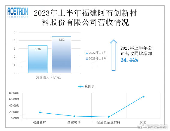福建阿石创新材料股份有限公司23年半年度营业收入同比增长34.44%