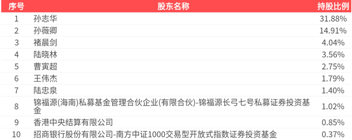 公司股东户数为7.30万户,前十大股东持股数量为1.87亿股,占总股本比例为62.56%,前十大股东持股情况如下: