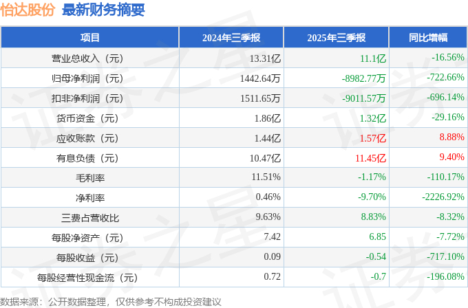 怡达股份(300721)2025年三季报简析:净利润同比下降722.66%,短期债务压力上升