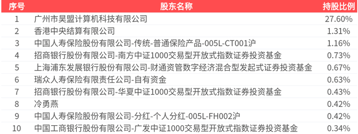 公司股东户数为11.36万户,前十大股东持股数量为3.32亿股,占总股本比例为33.72%,前十大股东持股情况如下: