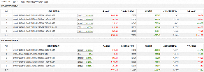 1月23日,*ST左江今日涨停,全天换手率达18.94%,振幅达26.51%。龙虎榜数据显示,营业部席位合计净买入276.97万元。其中,东方财富证券拉萨东环路第一证券营业部、东方财富证券拉萨团结路第二证券营业部分别买入1456.49万元、985.13万元;东方财富证券拉萨东环路第二证券营业部、华泰证券杭州求是路证券营业部分别卖出1062.58万元、883.22万元。