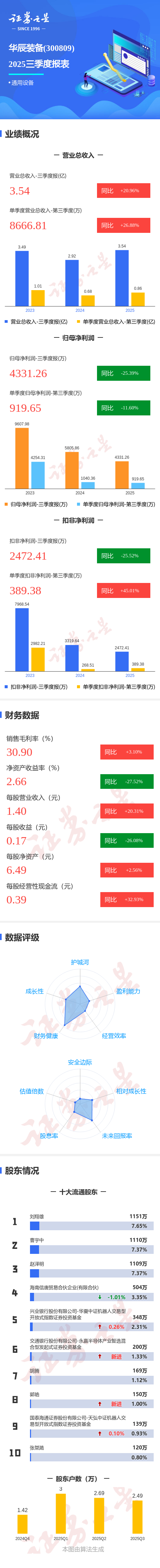 图解华辰装备三季报:第三季度单季净利润同比下降11.60%
