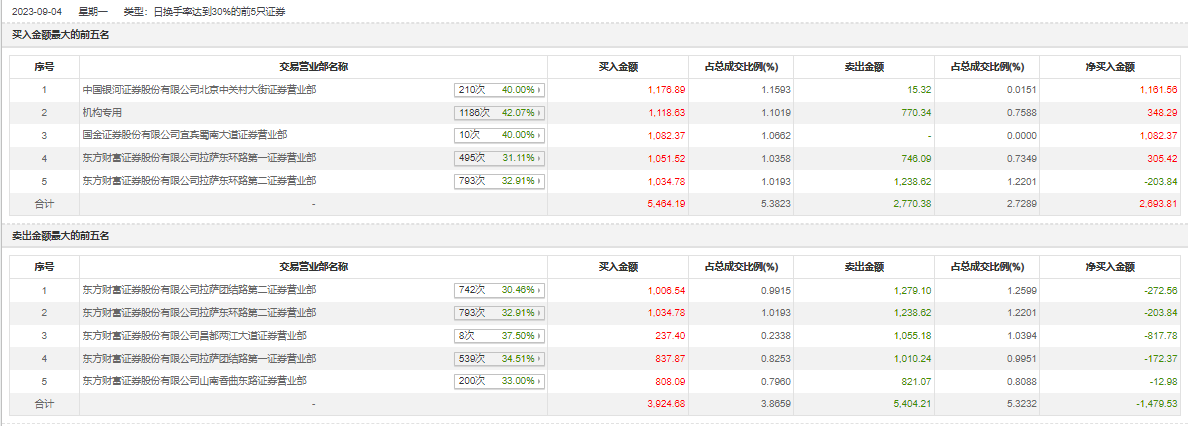 具体来看,机构买入1118.63万元,卖出770.34万元,合计净买入348.29万元。此外,中国银河证券北京中关村大街证券营业部、国金证券宜宾蜀南大道证券营业部分别买入1176.89万元、1082.37万元;东方财富证券拉萨团结路第二证券营业部、东方财富证券拉萨东环路第二证券营业部分别卖出1279.10万元、1238.62万元。