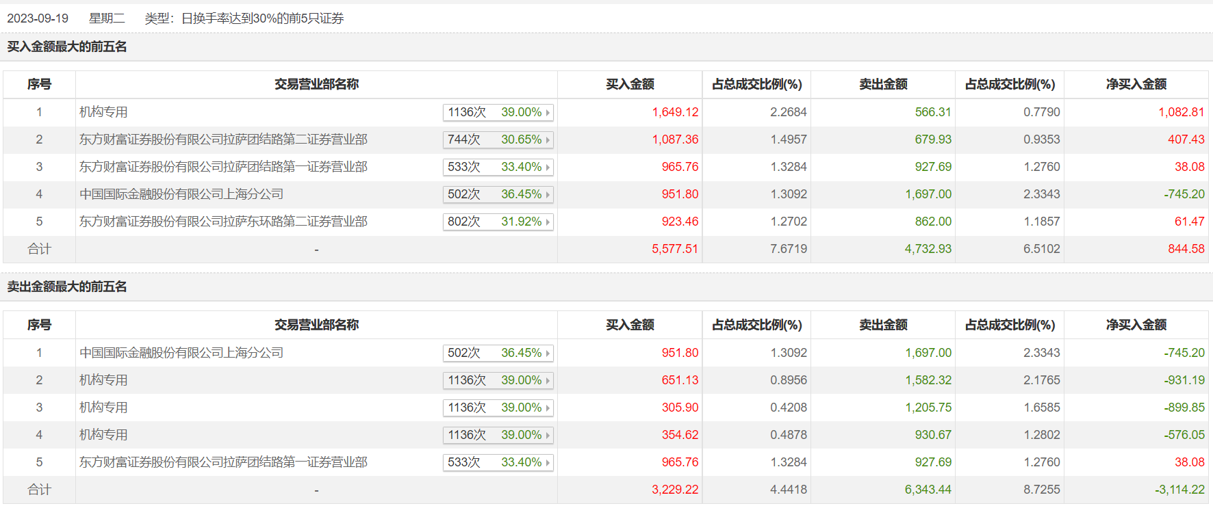 具体来看,机构买入2960.78万元,卖出4285.06万元,合计净卖出1324.28万元。此外,中国国际金融上海分公司、东方财富证券拉萨团结路第一证券营业部分别卖出1697.00万元、927.69万元;东方财富证券拉萨团结路第二证券营业部、东方财富证券拉萨团结路第一证券营业部分别买入1087.36万元、965.76万元。
