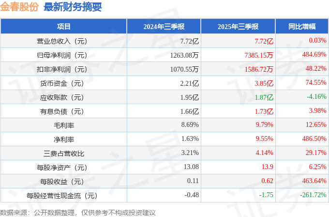 金春股份(300877)2025年三季报简析:营收净利润同比双双增长,盈利能力上升